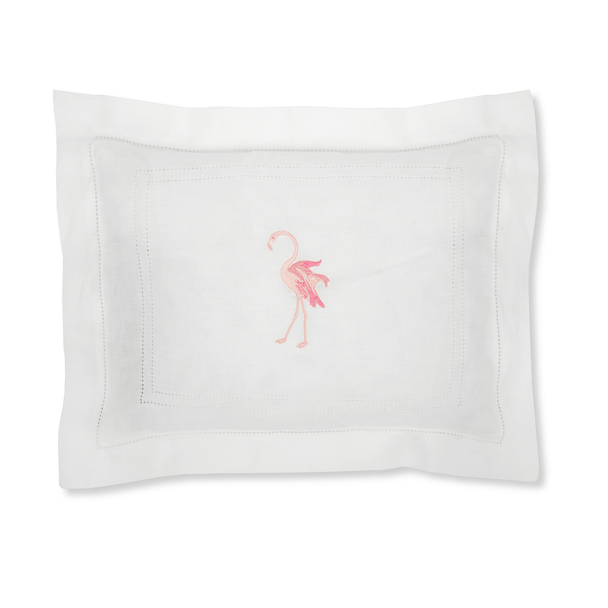 Boudoir Pillow with Ivory White Hemstitch and Flaming Flamingo Embroidery