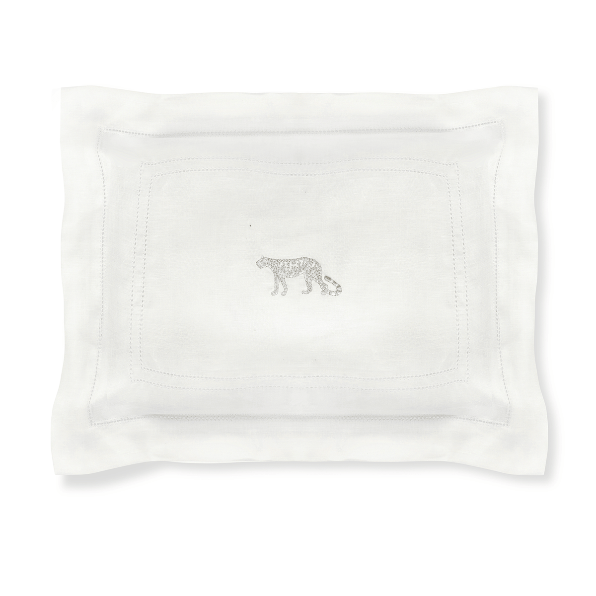 Boudoir Pillow with Ivory White Hemstitch and Leopard Embroidery