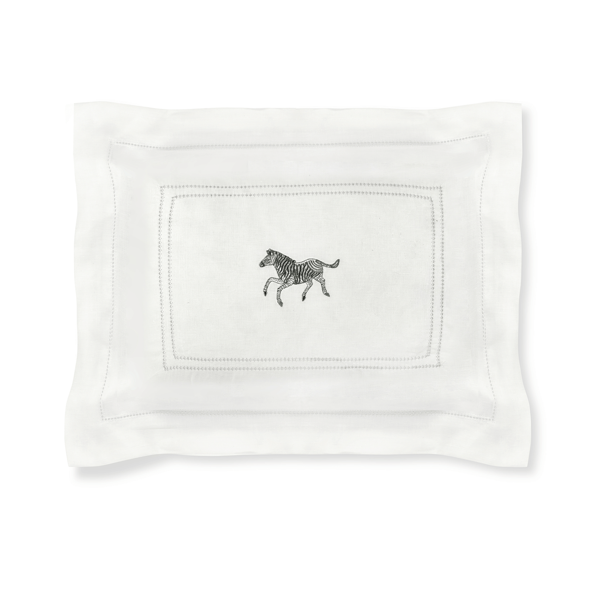 Boudoir Pillow with Parma Grey Hemstitch and Zebra Embroidery