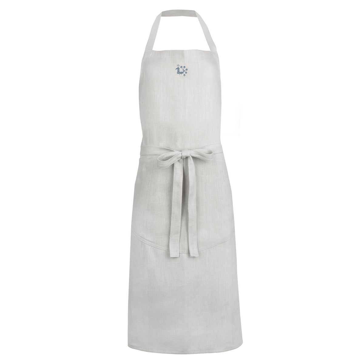 Volga’s classic bib apron is crafted from our Light Weight Plain Linen fabric and features a large front pocket and cockerel embroidery. Limited stock available.