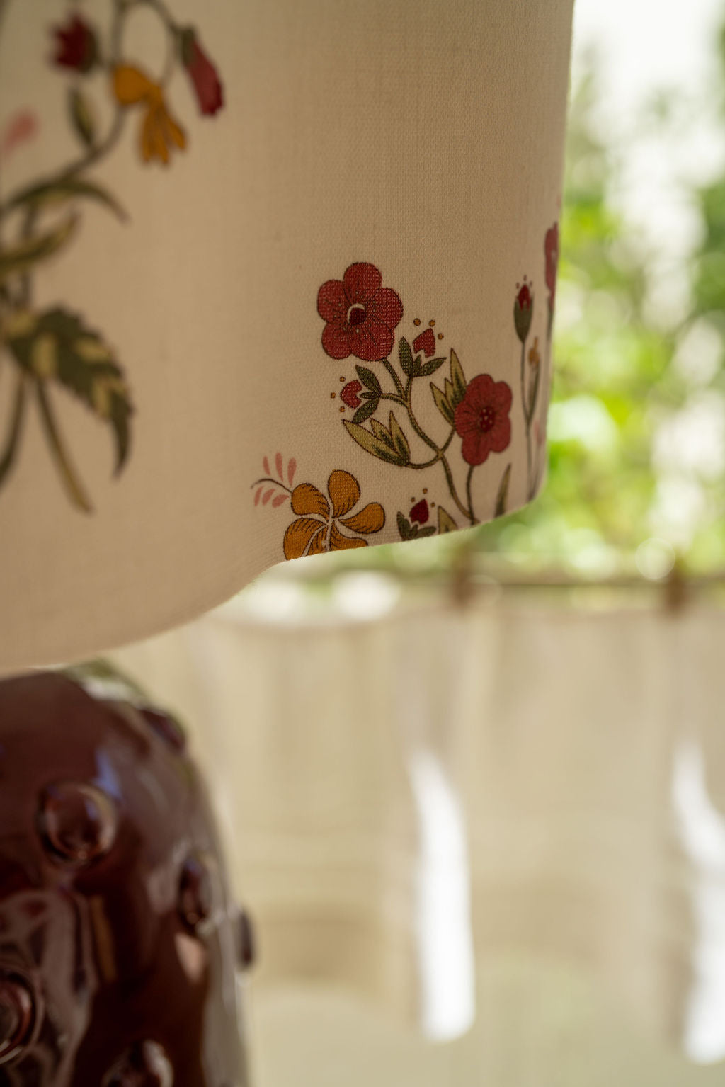 Available Now Daisy Lampshade in Flax & Field Flower Scarlet