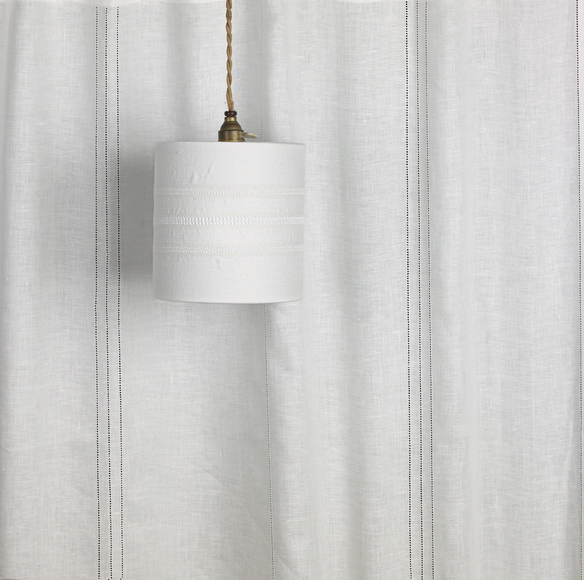 - Pattern: Ivory white linen embroidered with three vertical rows of hemstitch followed by one vertical row of hemstitch