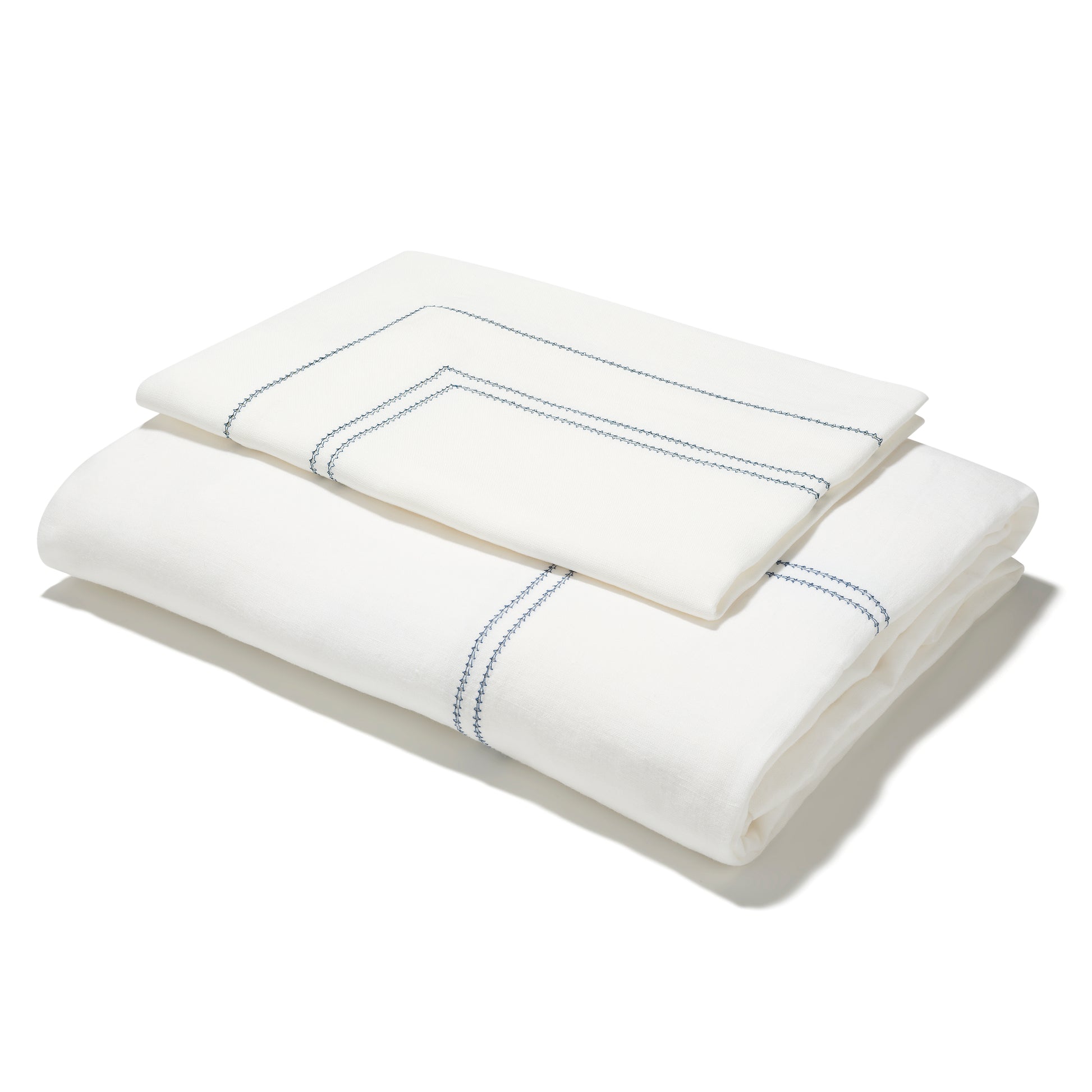 At Volga Linen, we have perfected the incomparable sensation of sleeping next to pure linen. Our duvet cover is embroidered by hand with a frame of hemstitch drawn thread work.