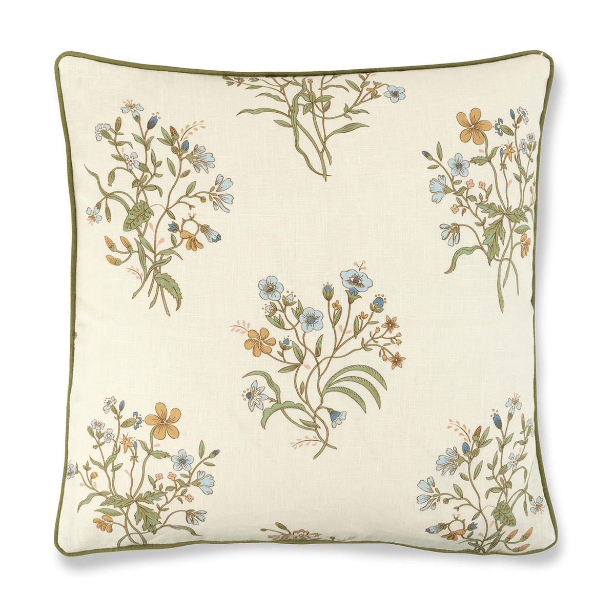 Flax & Field Flower Print Cushion with Fern Green Trim
