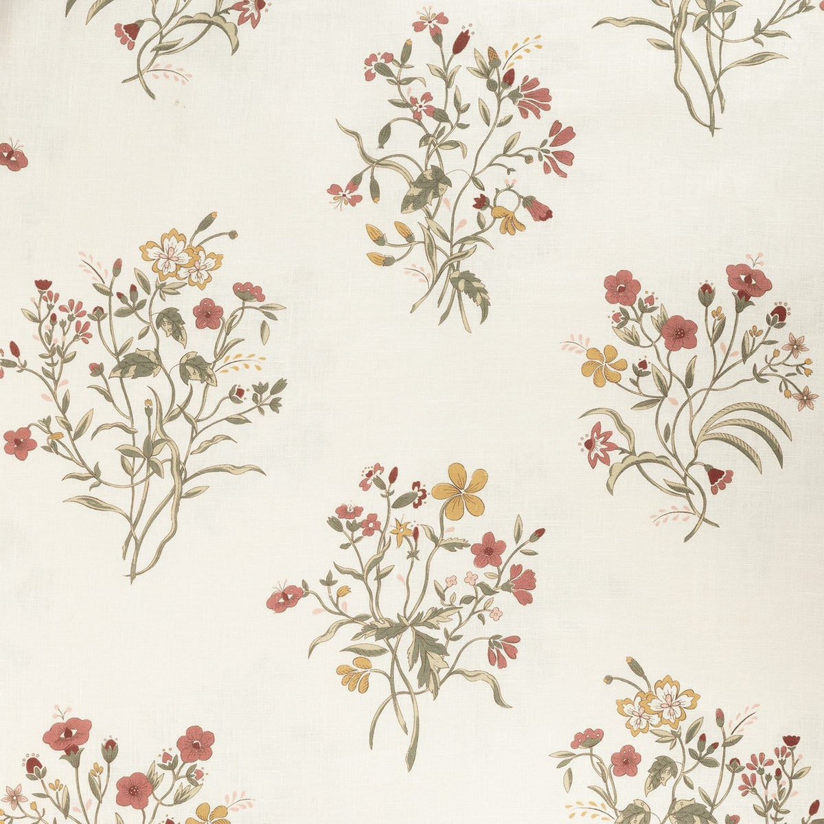 Paper-Backed Flax & Field Flowers Printed Linen Wallcovering Scarlet/Pale Oyster