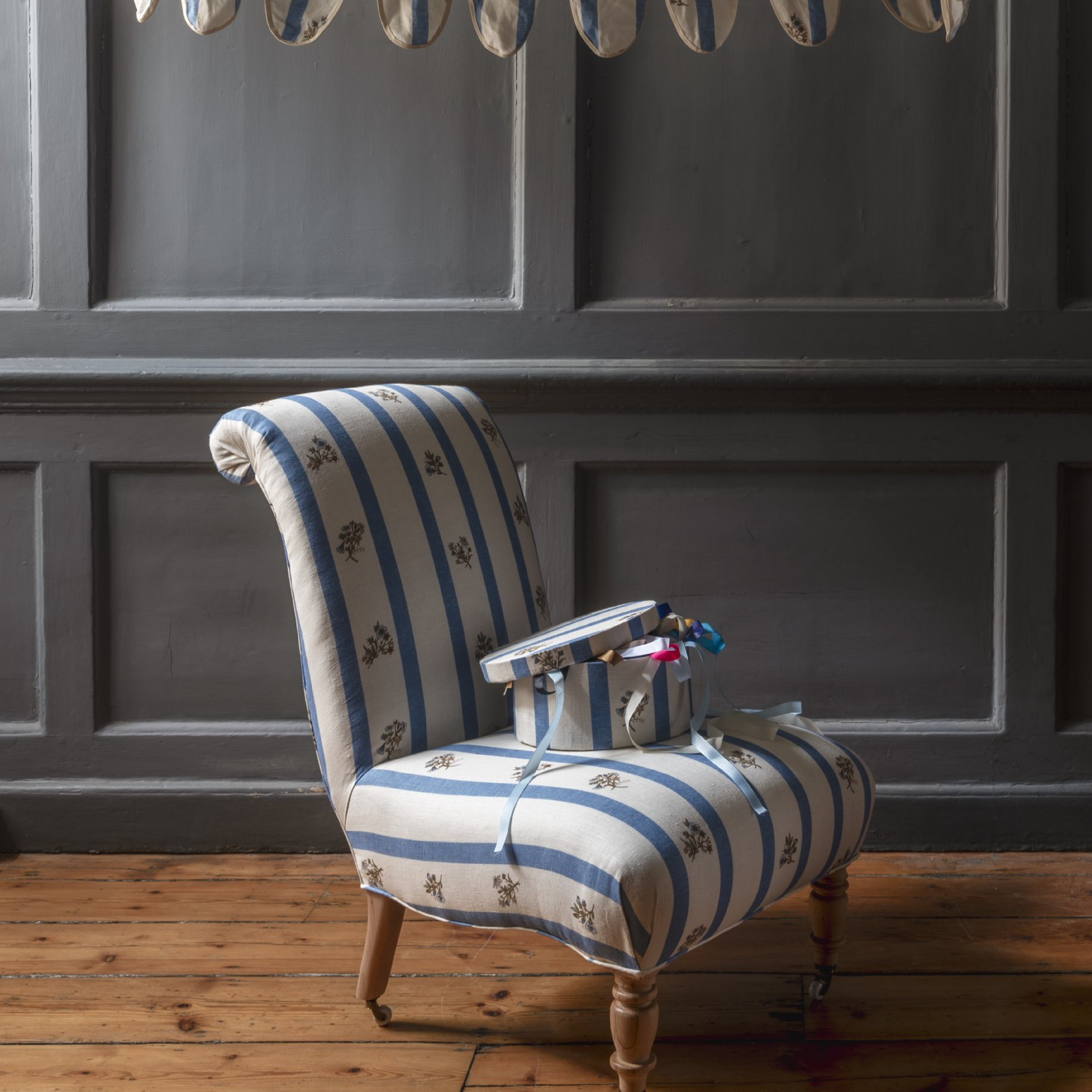 Flax & Field Posy Stripe Dual Use Printed Linen Cornflower Blue/Pale Oyster