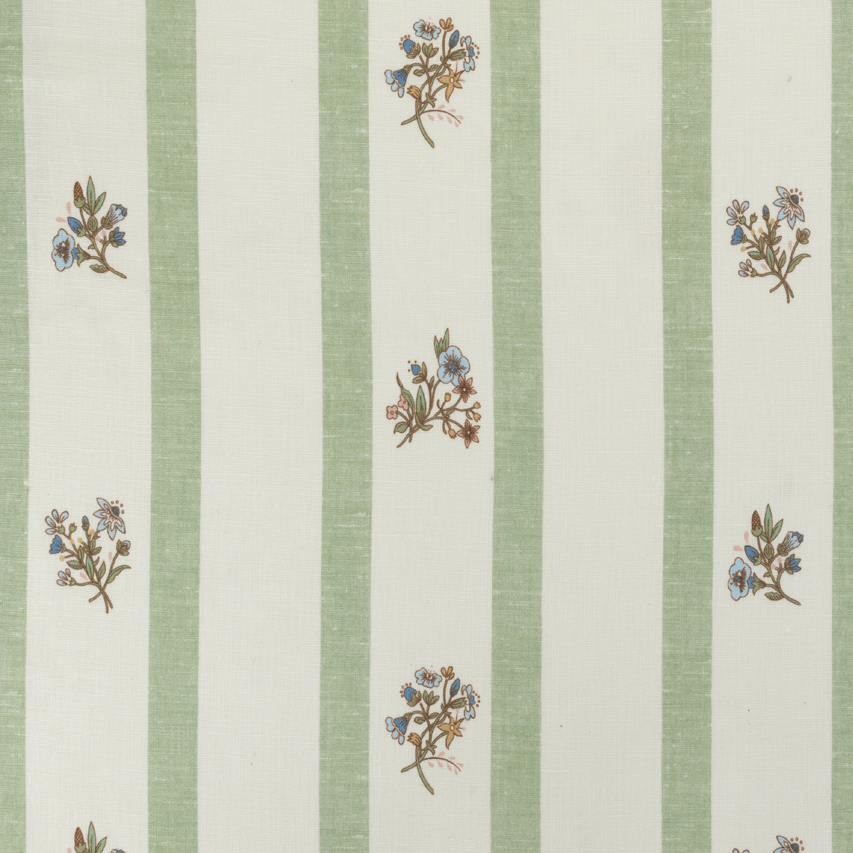 Paper-Backed Flax & Field Posy Stripe Printed Linen Wallcovering Eucalyptus/Pale Oyster