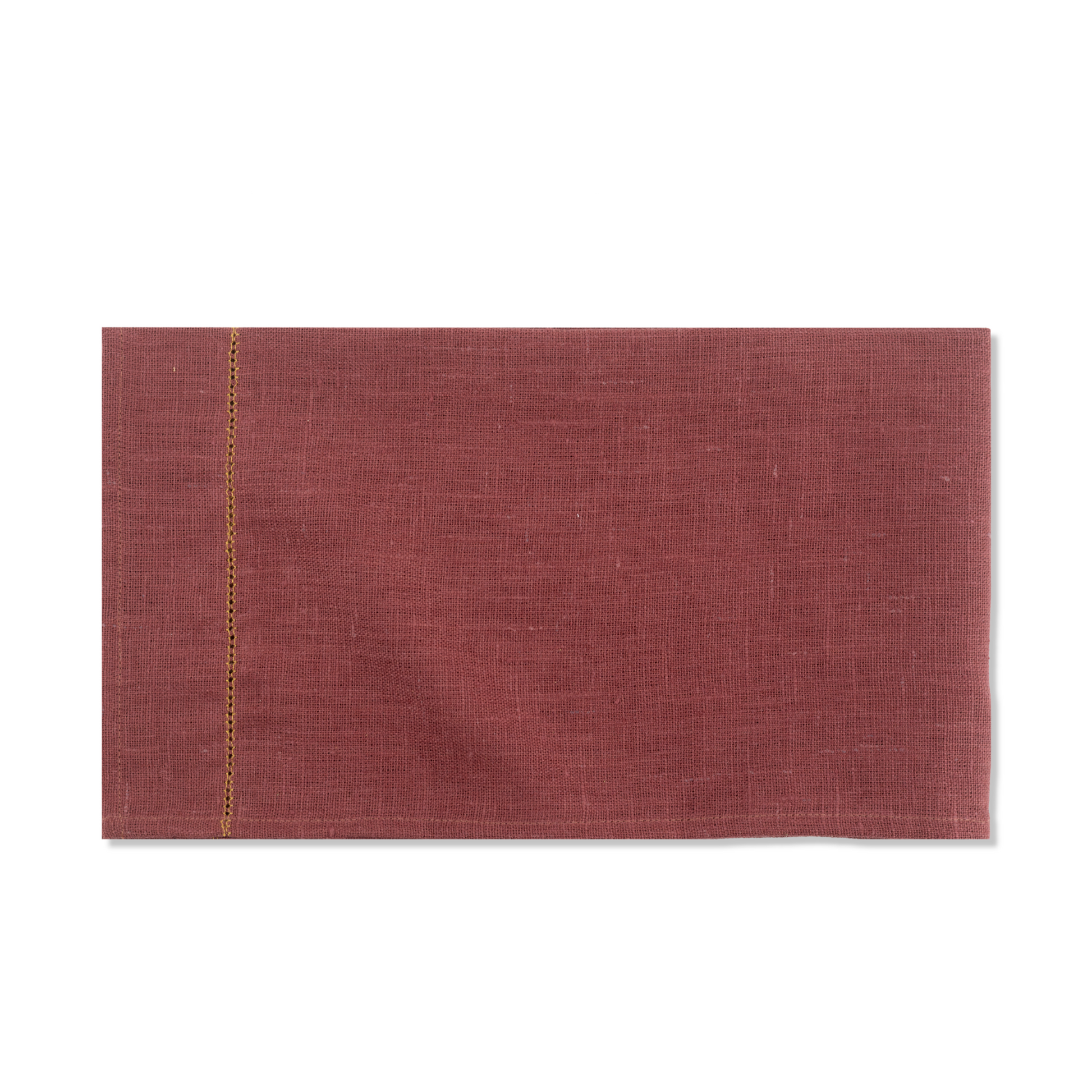 Our Marsala linen Hand Towel featuring intricate Ochre hemstitch detailing – a beautifully crafted and luxurious addition to your space. Each towel is lovingly handmade by our skilled artisans, ensuring a superior quality product that’s made to last. A perfect gift when monogrammed.