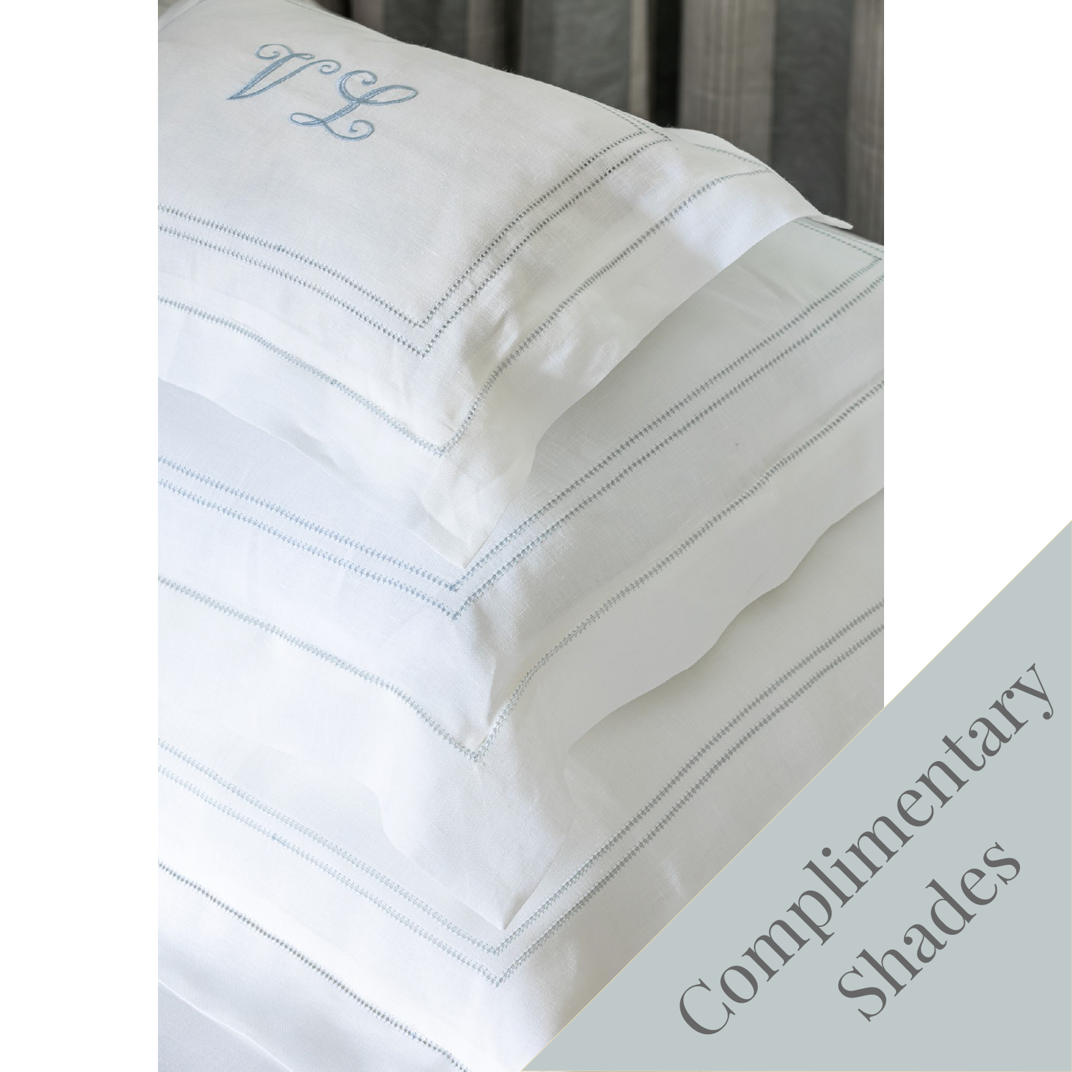 At Volga Linen, we have perfected the incomparable sensation of sleeping next to pure linen. Our pillowcase is delicately embroidered with a double frame and single frame of hemstitch thread work.