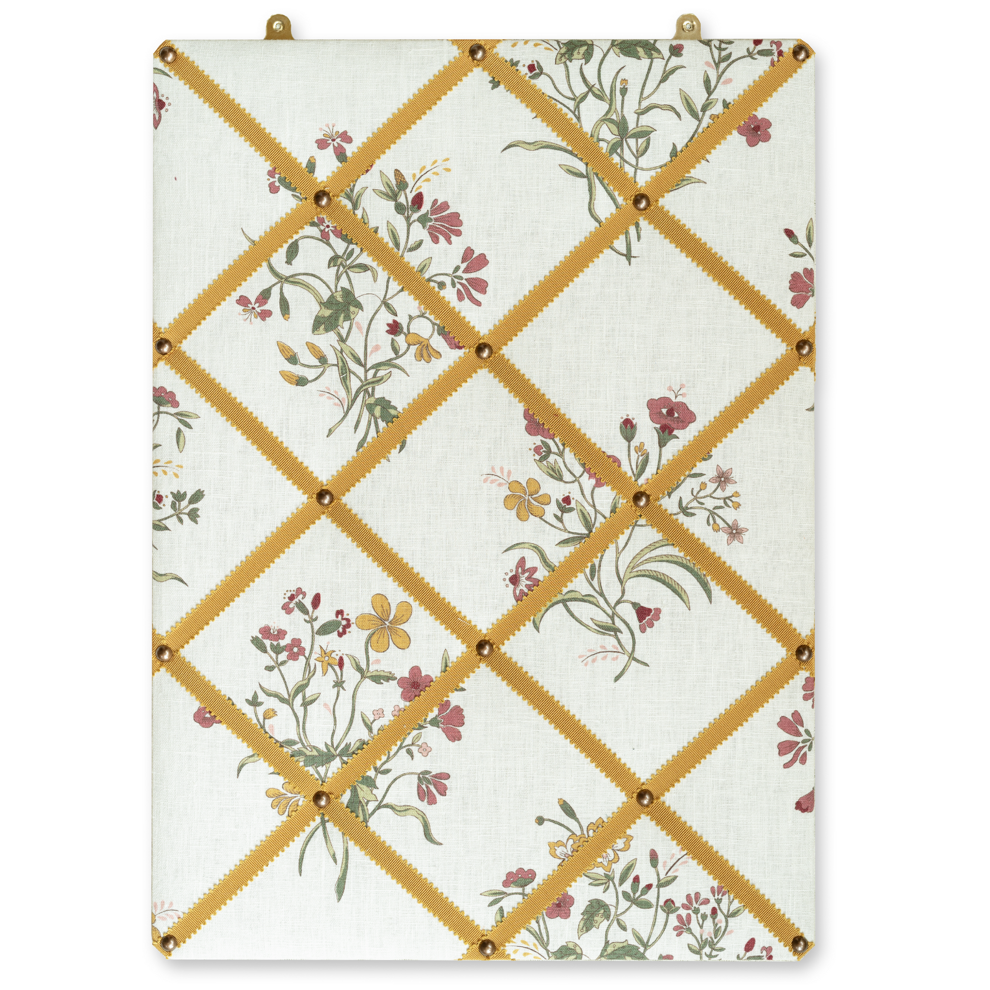 Ribboned Bulletin Board in Volga’s Flax & Field Flower Scarlet Print with Ochre Trim