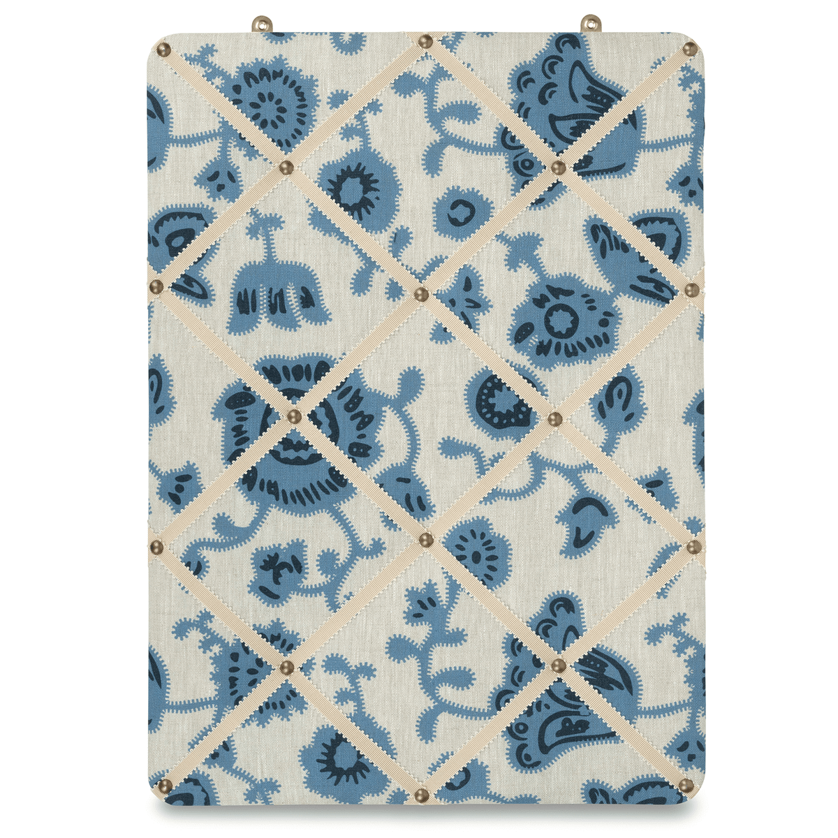 Limited Edition Bulletin Board upholstered by hand in England in our favourite Persian Poppy Cornflower Blue printed linen and finished with an Italian picot edge grosgrain ribbon and solid brass studs. Standard lead time 2-3 weeks.