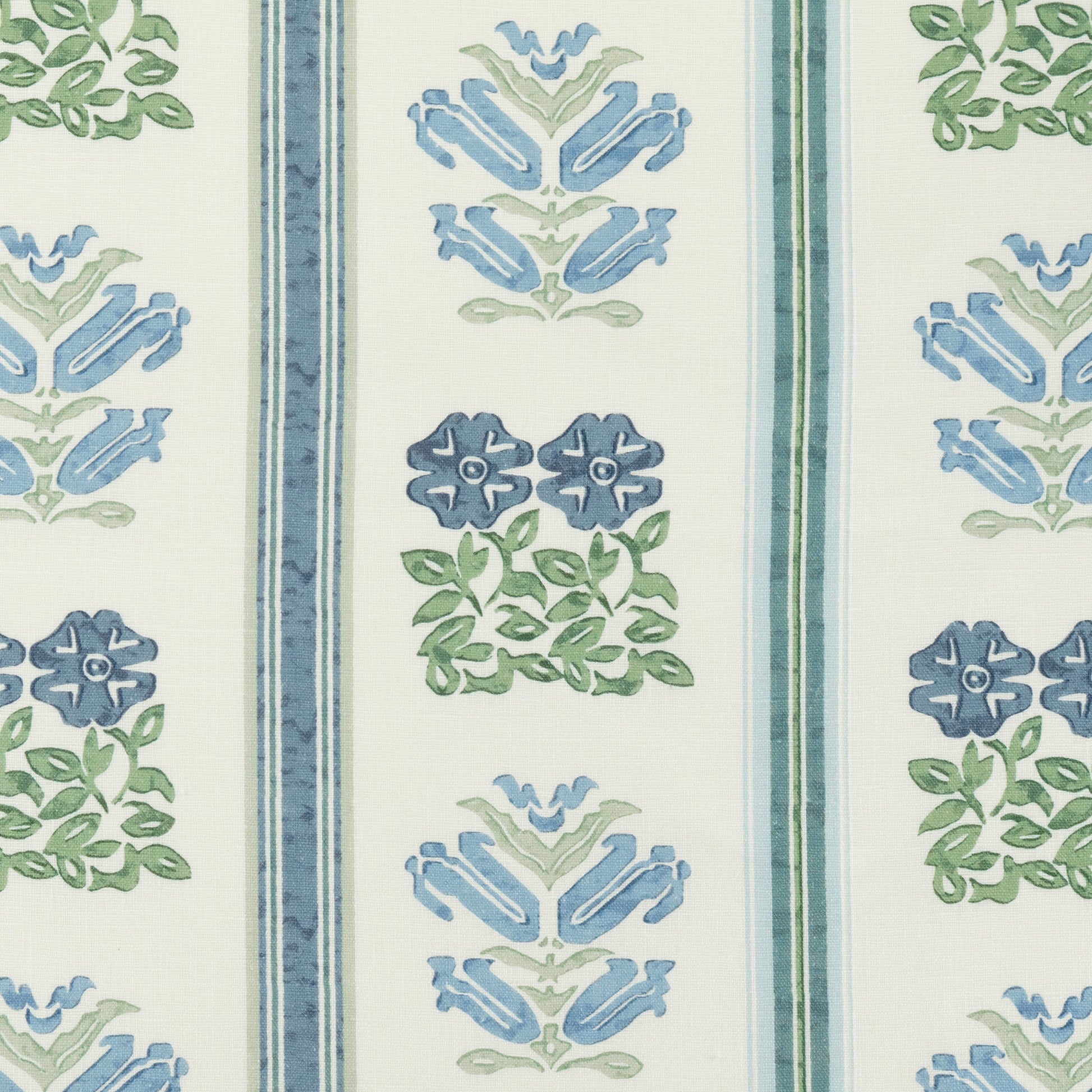 Sample - Folkloric Floral Stripe Dual Use Printed Linen Delft Blue/Oyster