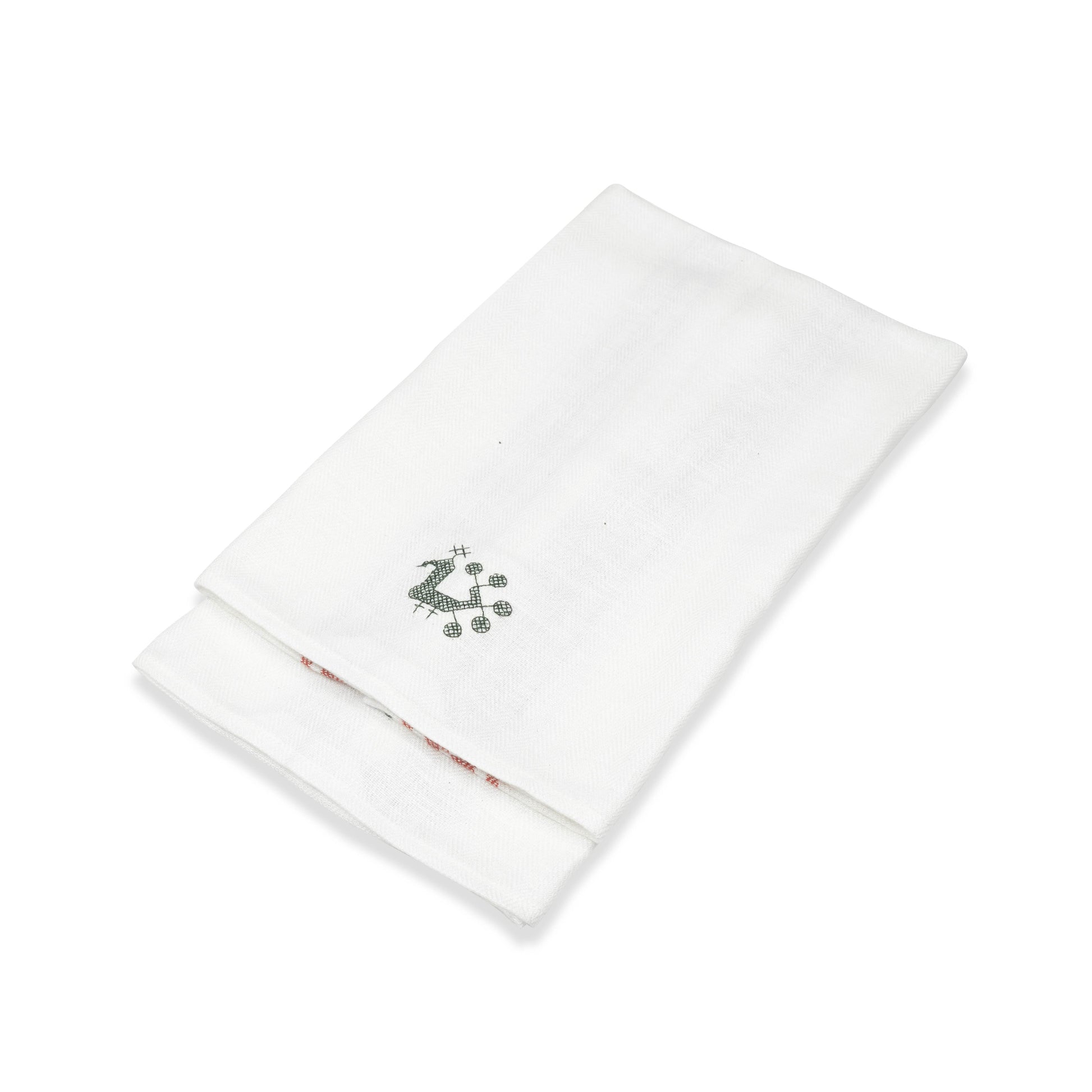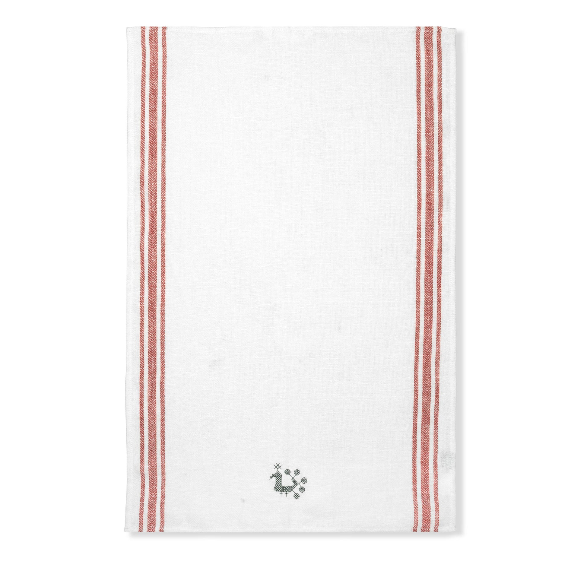 Inherently robust, linen is also fast-drying, making it ideal for day-to-day use in the kitchen. This set of two kitchen towels feature a classic border in French red tones. These washed towels are our softest yet and are embroidered with the Volga Cockerel in Green.