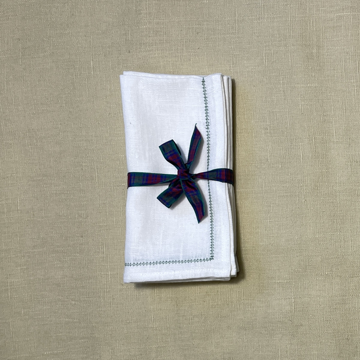 Set of 4 Ivory White Napkins with Constantia Green Hemstitch