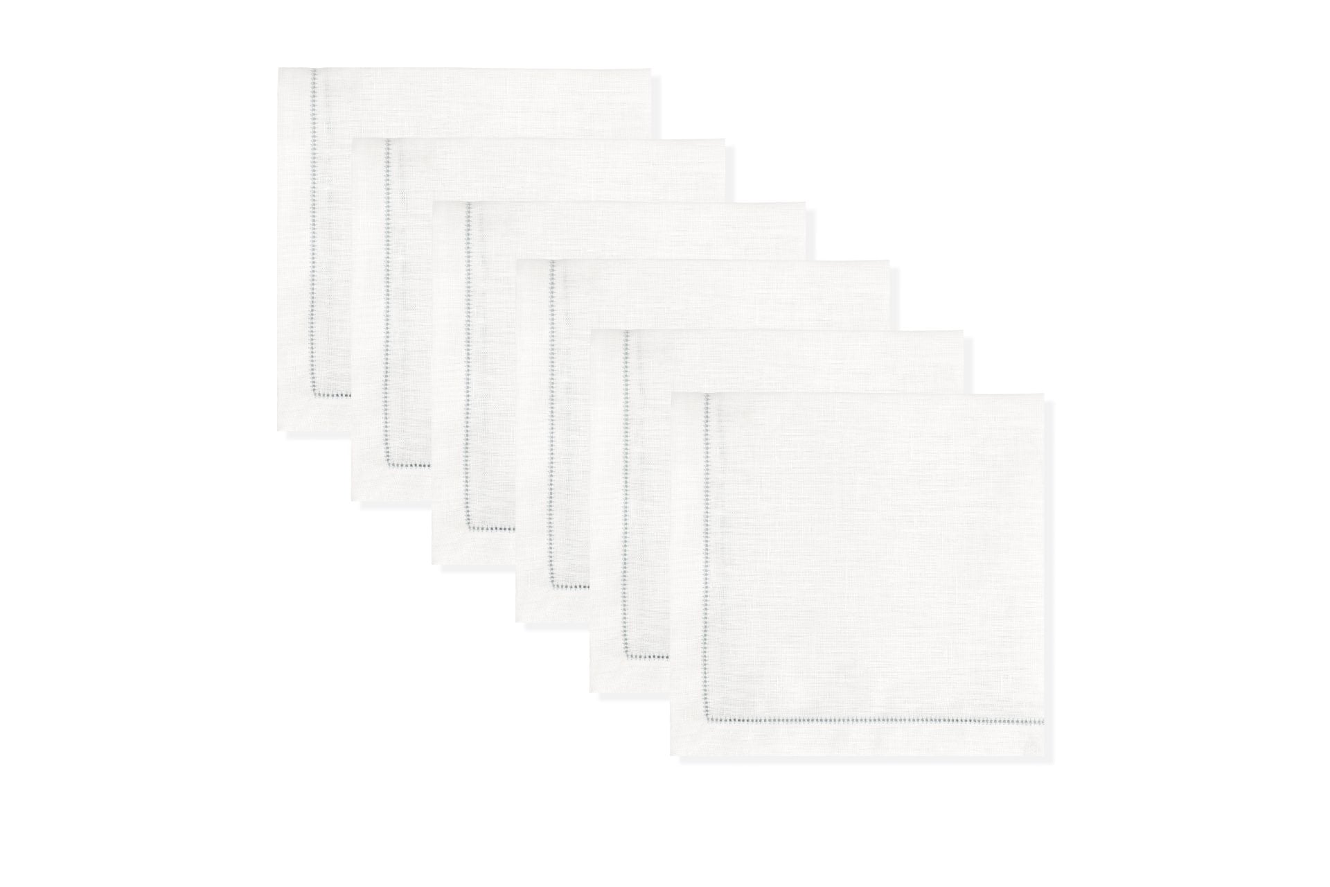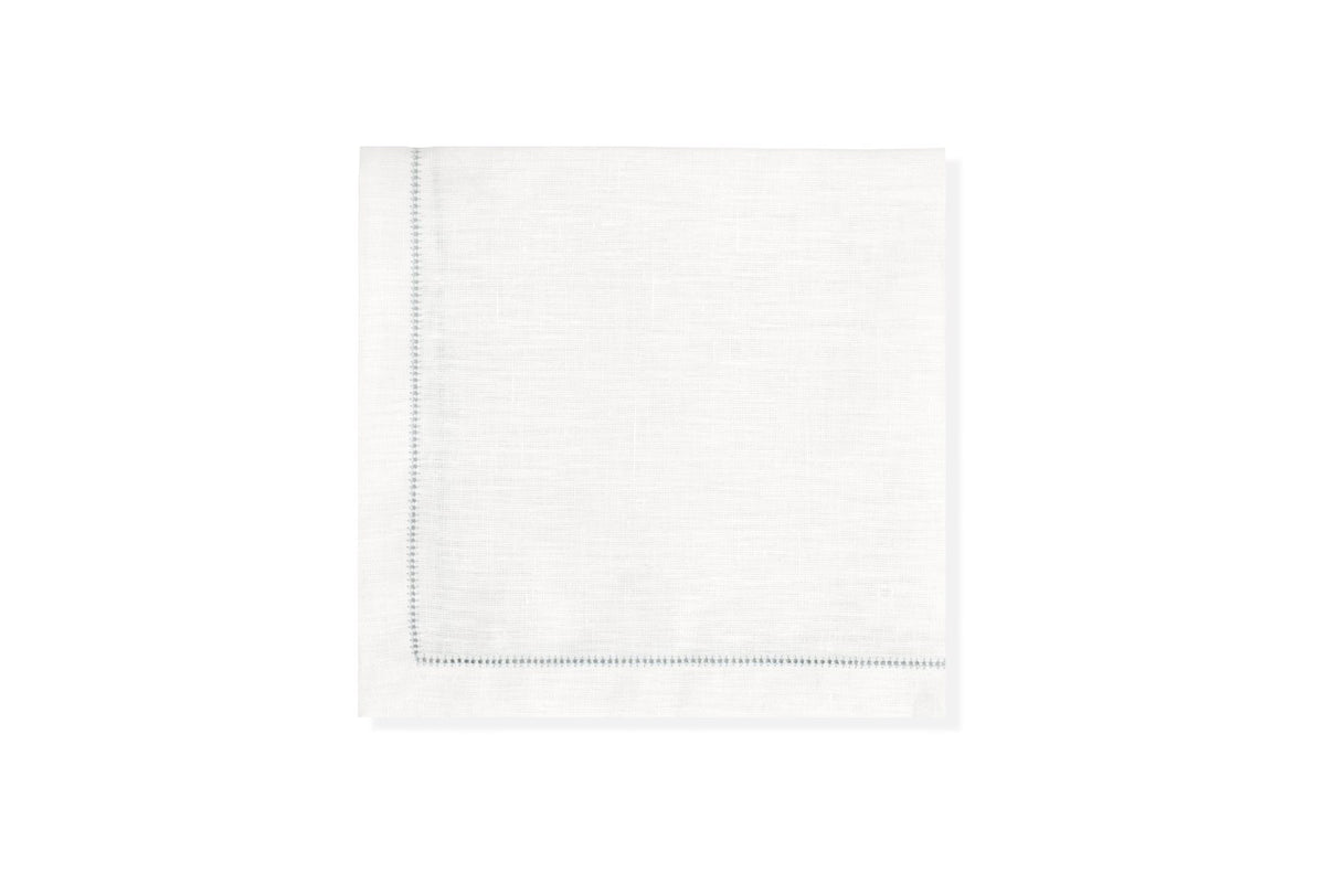 Set of 6 Ivory White Napkins with Sky Blue Hemstitch