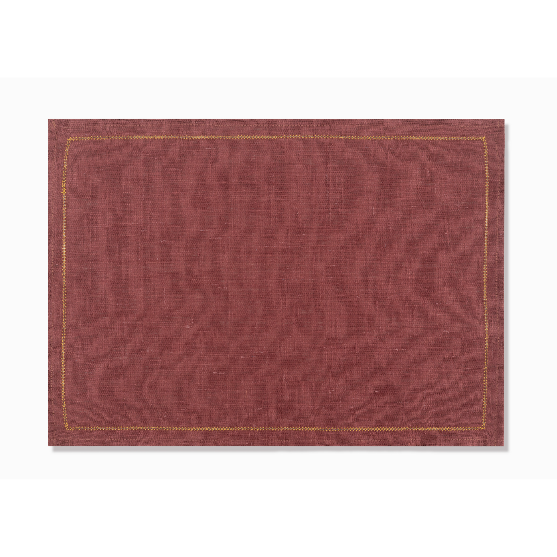 Elevate your dining experience with our Marsala placemats featuring intricate Ochre hemstitch detailing, the perfect complement to any table setting. These placemats are crafted from the finest linen. A perfect gift when monogrammed.