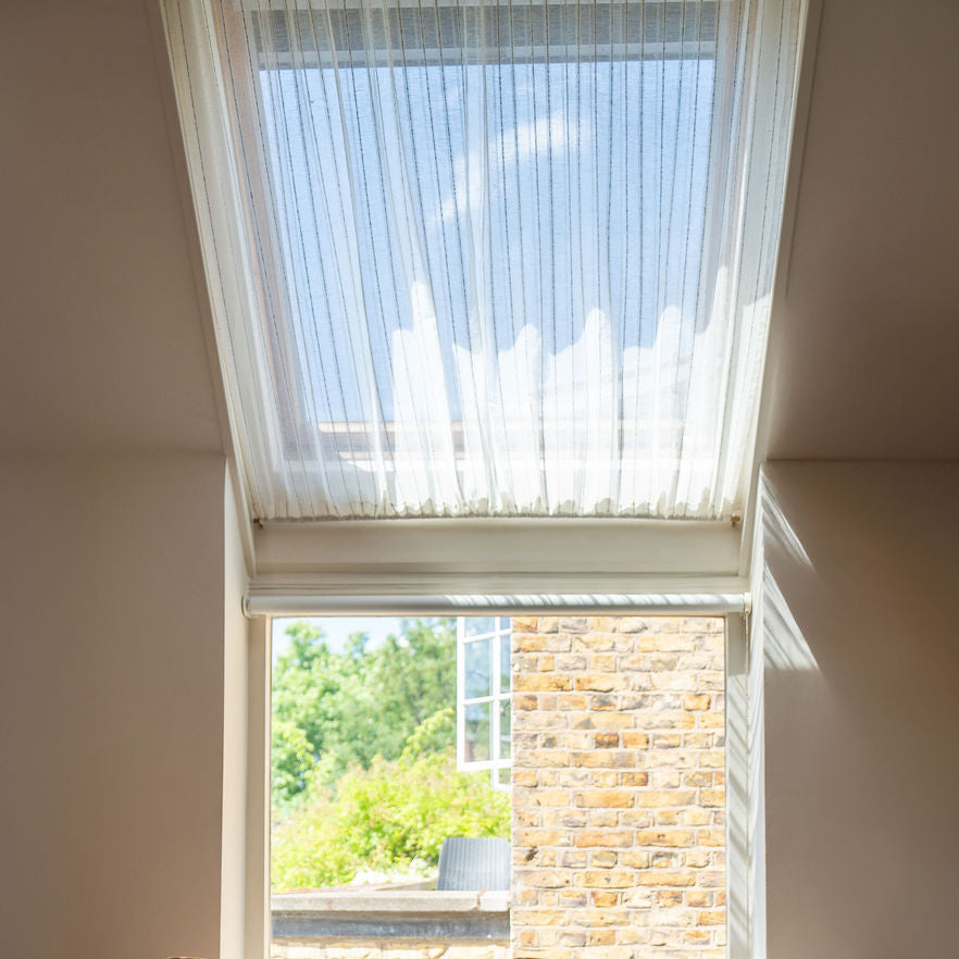 The sheerest fabric in our collection, a double width textured stripe sheer linen woven by artisans in Belgium