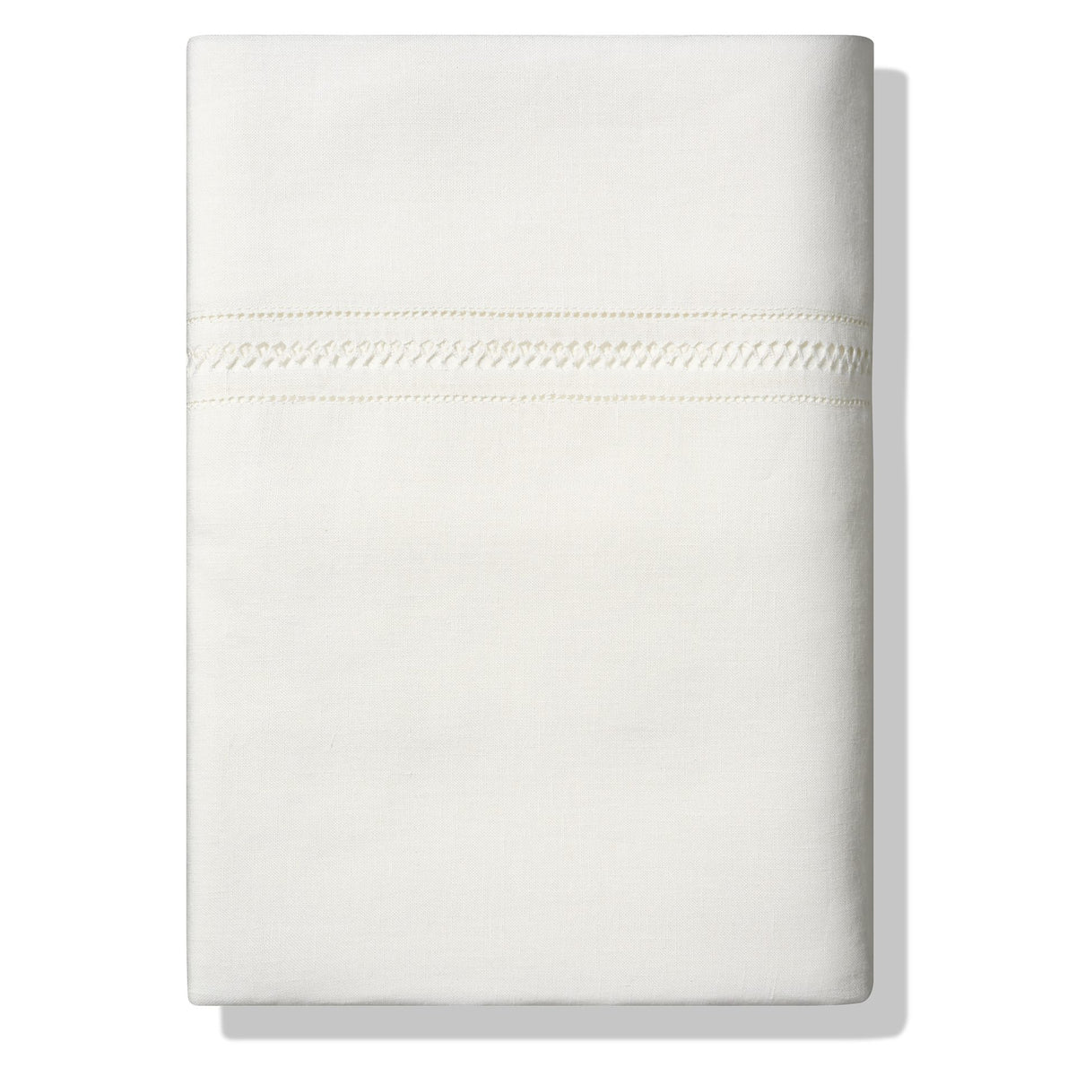 We have perfected the incomparable sensation of sleeping next to pure linen at Volga Linen. Our top sheet is exquisitely embroidered by hand with a beautiful row of diamond and hemstitch drawn thread work, providing a lavish and comfortable sleep experience.